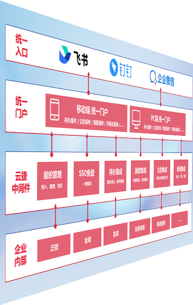 对协作平台提供支持服务,,支持企业应用与协作平台对接,,包含组织同步、、消息集成、、、、待办集成等。。。。支持目前主流的协作平台:钉钉、、企微和飞书。。